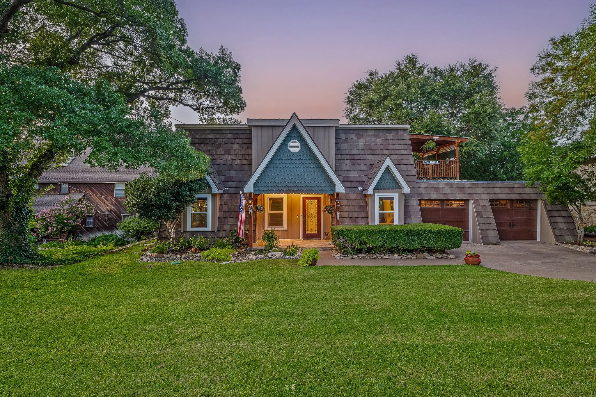 Welcome Home! Tucked beneath mature trees and exuding timeless charm, this 3-bedroom, 3-bath New England-style lakefront cottage on Lake Granbury is a rare find! Set on a lush, manicured lot overlooking a deep cove, this home offers direct lake access with a private boat dock! Ideal for serene mornings on the water or sunset cruises. The exterior features distinctive pitched rooflines, cedar shake siding, and a welcoming front porch that captures the essence of classic coastal design. Inside, the character continues with warm finishes and thoughtful updates. Enjoy water views from multiple vantage points, and relax or entertain from the expansive upper-level deck shaded by trees. Whether you’re escaping for the weekend or settling in for full-time lake living, this one-of-a-kind retreat offers the perfect blend of charm, comfort, and lakeside lifestyle perfect location near Granbury Marina, Stumpy’s Lakeside Grill, Rough Creek Boat Ramp, and minutes from Granbury downtown square. Granbury has been rated one of the best small towns in the US so there are endless opportunities for dining, shopping and fun! Surrounded by large trees, the grassy area is perfect for relaxation with family and friends. Outdoor and indoor spaces come with furnishings and enhance the appeal, making this lake house an exceptional blend of tranquility and outdoor fun. Don’t miss your chance to make this turnkey property yours! Fresh paint throughout and ready to enjoy! Would make a great STR!!! All appliances convey along with jet skis, kayaks and much more!!!